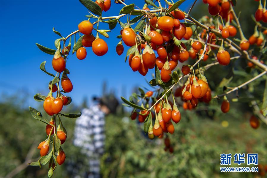 7月13日在新疆精河县托里镇一处枸杞种植园拍摄的成熟枸杞。近日,新疆精河县10万余亩枸杞陆续成熟,当地农民抢抓农时,采收枸杞。近年来,精河县持续发展和培育枸杞“红色产业链”,加大资金扶持力度,提升精河枸杞的品牌效应,带动农民增收致富。精河县位于新疆天山山脉北麓,准噶尔盆地西南边缘。当地日照时间长、昼夜温差大且气候干燥,有利于枸杞果实糖分和药用成分积累。新华社记者 胡虎虎 摄