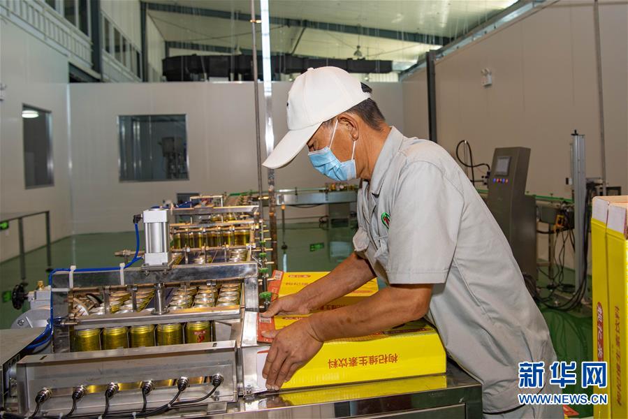 7月13日,在位于新疆精河县托里镇的一家枸杞深加工企业,工人在打包枸杞维生素饮料。近日,新疆精河县10万余亩枸杞陆续成熟,当地农民抢抓农时,采收枸杞。近年来,精河县持续发展和培育枸杞“红色产业链”,加大资金扶持力度,提升精河枸杞的品牌效应,带动农民增收致富。精河县位于新疆天山山脉北麓,准噶尔盆地西南边缘。当地日照时间长、昼夜温差大且气候干燥,有利于枸杞果实糖分和药用成分积累。新华社记者 胡虎虎 摄