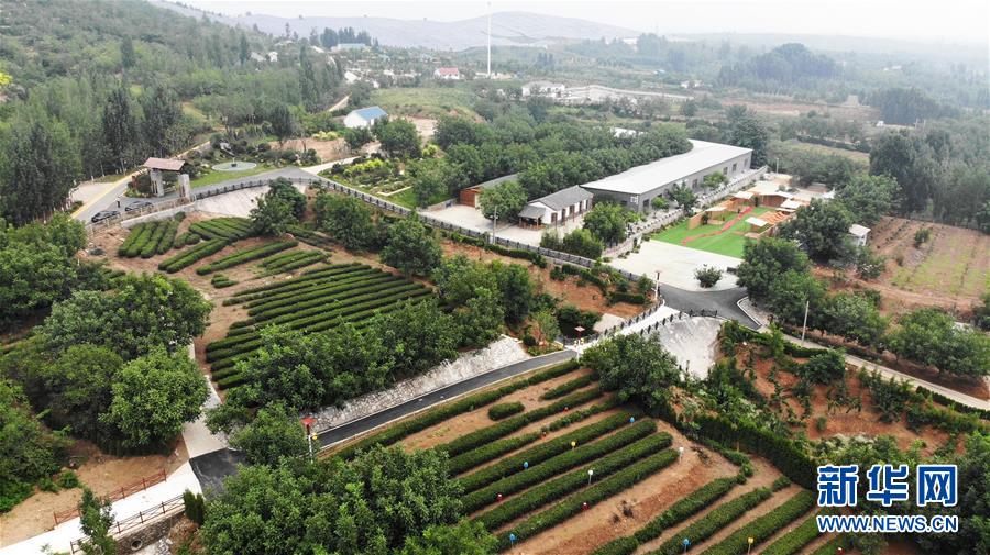 7月14日拍摄的汶上县白石镇夏村一处茶叶生产基地(无人机照片)。近年来,山东省汶上县在乡村振兴过程中整治乡村环境、发展生态产业,建设美丽宜居的绿色乡村。新华社记者 王凯 摄