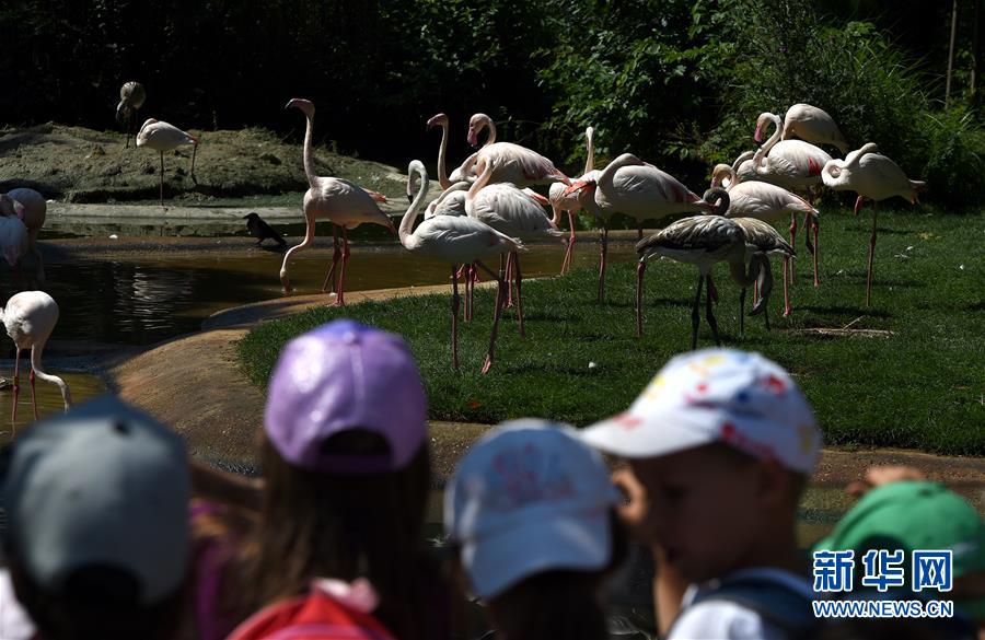 这是7月23日在奥地利维也纳拍摄的美泉宫动物园里的火烈鸟。位于奥地利维也纳的美泉宫动物园在夏季吸引了不少市民带着孩子前来游玩。美泉宫动物园位于世界文化遗产美泉宫景区内,从5月中旬疫情措施解封重新开放后,逐渐迎来游客。新华社记者郭晨摄
