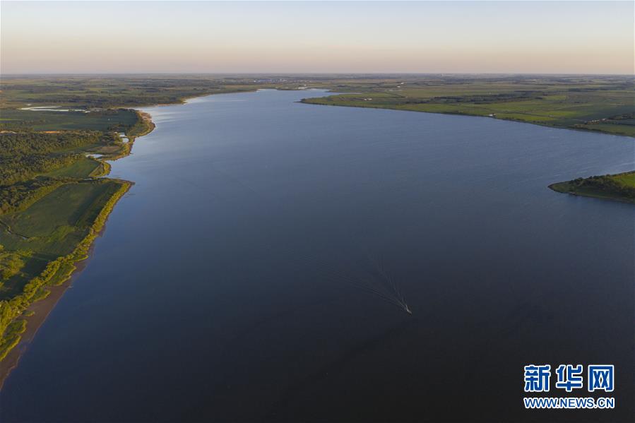 7月24日拍摄的大力加湖和停在湖面上的渔船。大力加湖位于“中国东极”黑龙江省抚远市,面积28.5平方公里,两岸地势低平,多湿地、草原,湖内水产丰富。夏日傍晚时分,渔民捕鱼归来,美丽画卷映入眼帘。新华社记者谢剑飞摄
