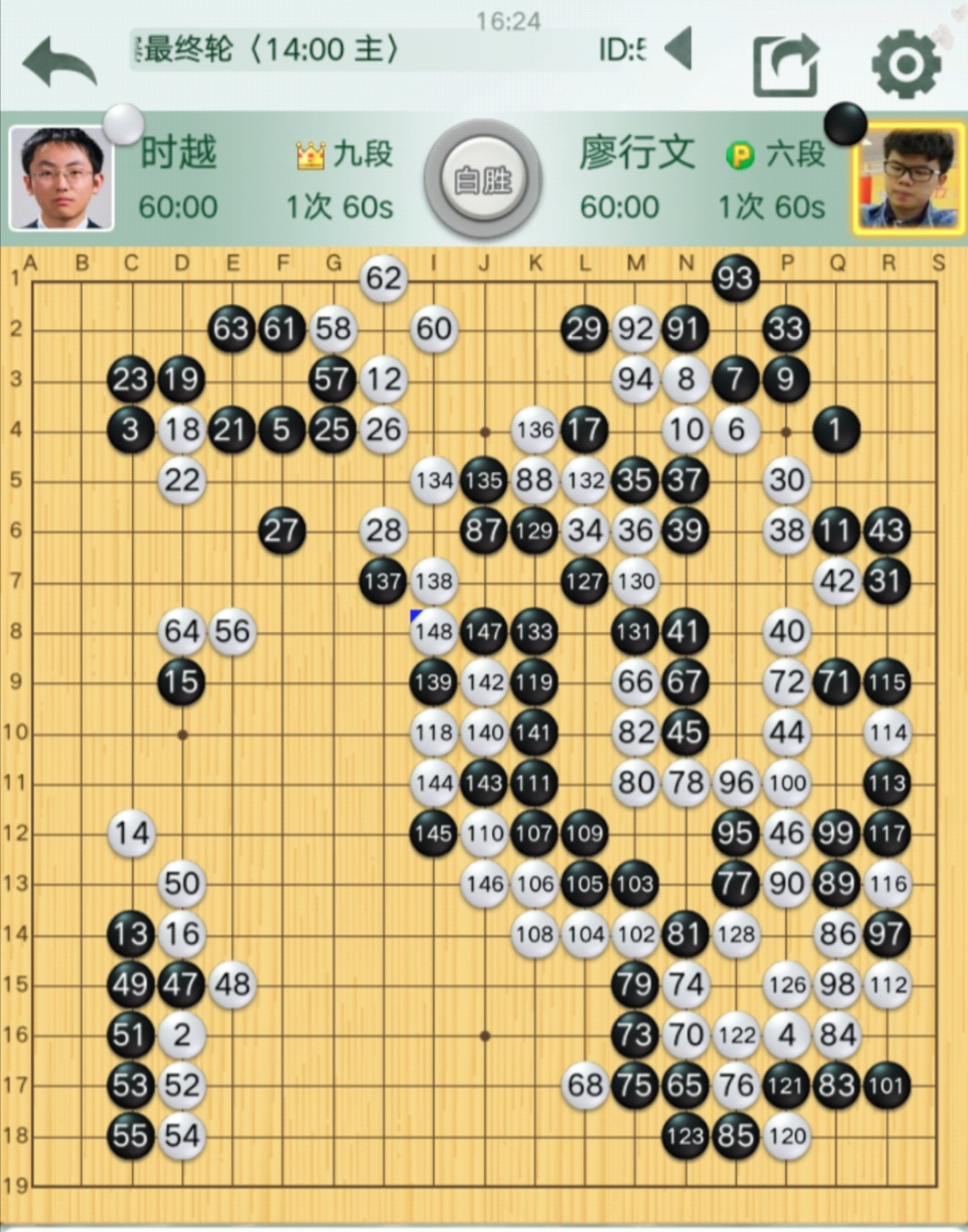 二台:时越九段(主将)对廖行文六段