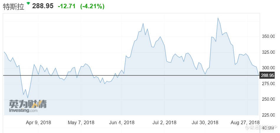 特斯拉周二盘前跌超2%,开盘后一路走低,收跌4.21%,报288.95美元。截至上周五,今年以来特斯拉股价累跌超5%,同期标普500大盘累涨9.5%;过去12个月,特斯拉股价累跌15%,同期标普大盘累涨17%。