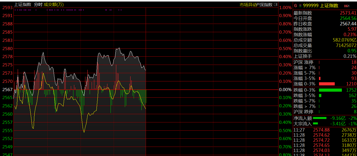云财经讯,截至早盘收盘,上证指数报2573点,涨0.23%;深证成指报7602点,涨0.08%;创业板指数报1312点,跌0.01%。盘面上,白酒、分散染料、锂电池等板块涨幅居前,天津自贸区、知识产权保护、高送转等板块跌幅居前。