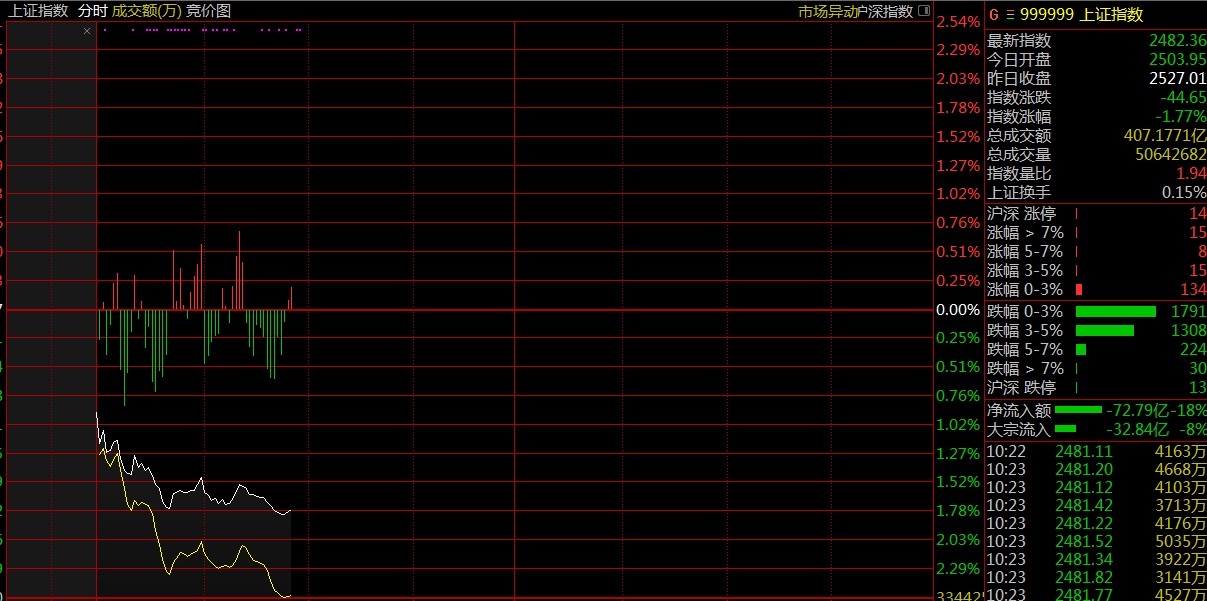 受美股加速下跌影响,12月25日,两市大幅低开,沪指开盘报2503.95点,跌0.91%。深成指开盘报7308.61点,跌1.14%。创业板开盘报1269.14点,跌1.18%。