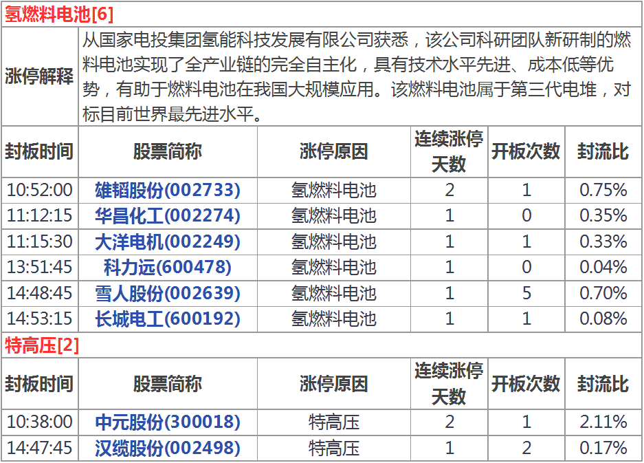 今天涨停家数较上一交易日有所增加,两市70家涨停;跌停8家。成交量方面,沪市成交1224亿元,深市成交1738亿元,两市总成交额约为2962元,较上一交易日缩量172亿元。盘面上,次新股、氢燃料电池、超导等板块涨幅居前,港口航运、彩票、智能音箱等板块跌幅居前。