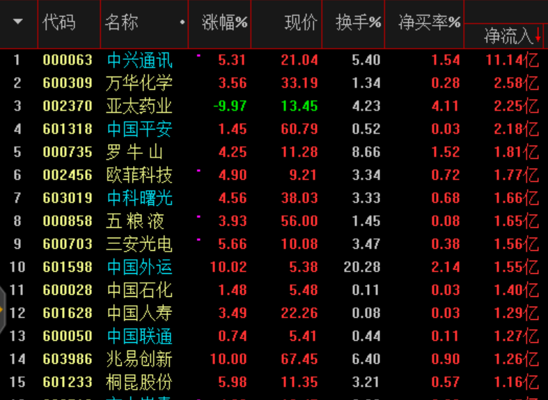 资金流向看行业龙头受到短期资金青睐: