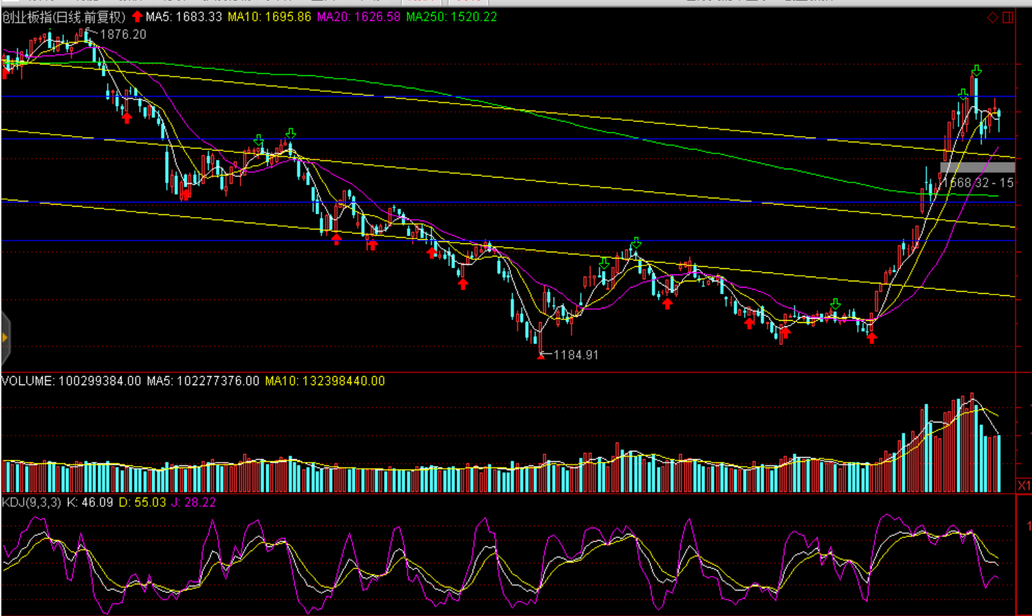 技术面:高位震荡,区间运行,成交萎缩显示短期反向不明。沪综指3040--3100点区间、创业板1600--1700点区间运行。
