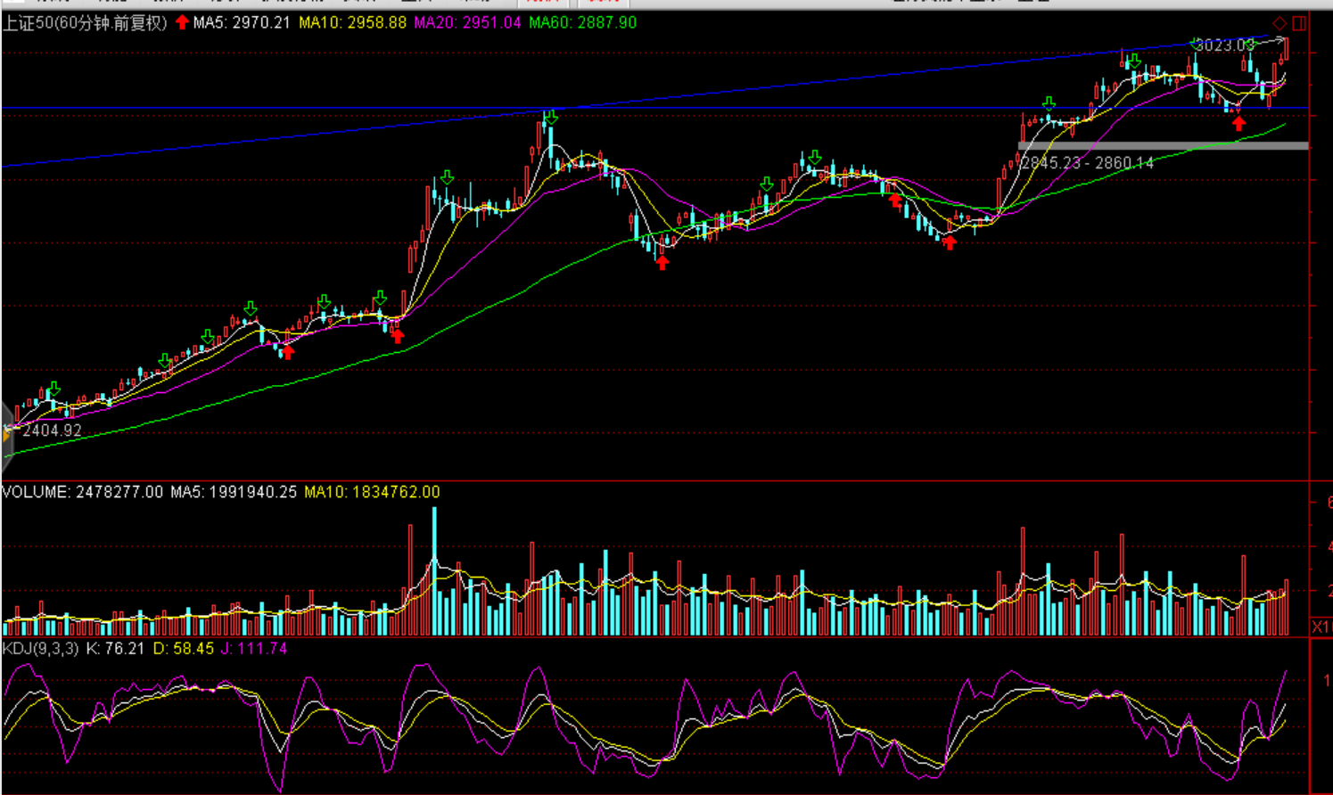 技术面:短期股强劲反弹修复调整结构,维持高位震荡,60分钟看上证50面临压力,预计今日股指冲高受阻,小阴或小阳报收。