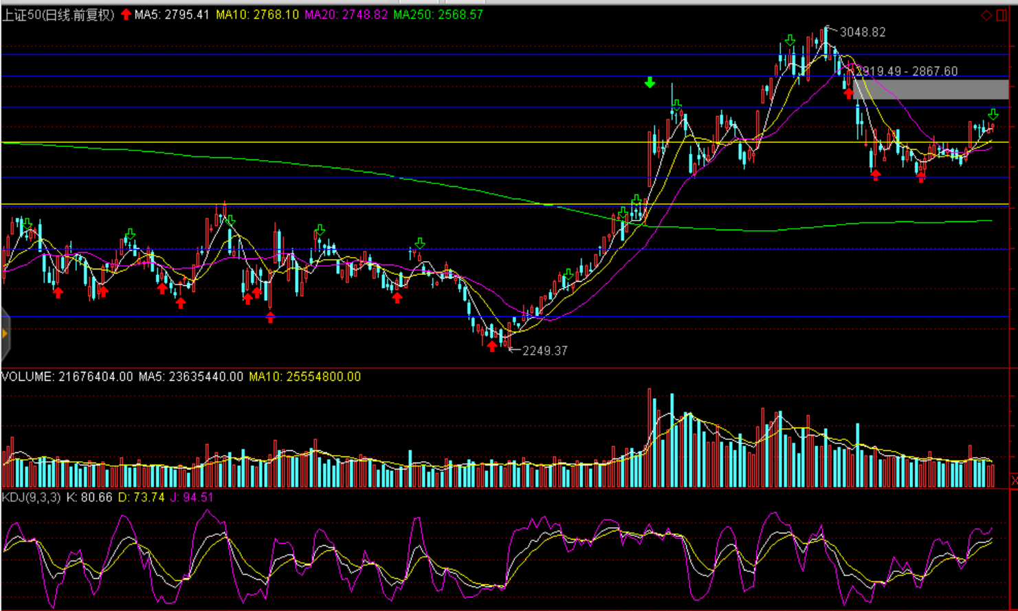 技术面:量能萎缩至近4个月新低,中短期均线系统粘合,短期股指有望向区间上轨反弹;沪综指2950点、创业板1500点、上证50于2840点一线存在压力。