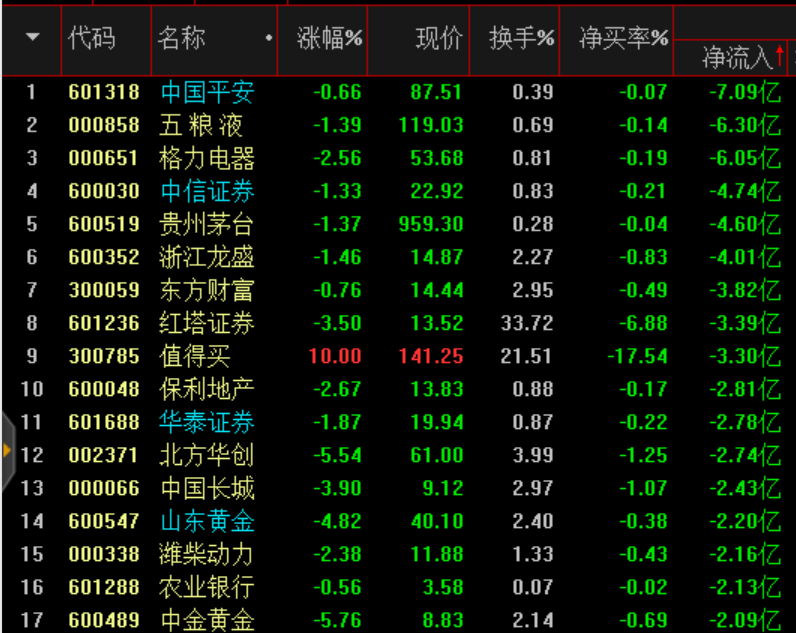 周四两市股指震荡下跌,除创业板小幅收阳外皆以阴线收盘。上证指数收跌0.81%报2908.77点,深证成指跌0.63%,创业板指涨0.22%;两市成交3740亿元,量能环比小幅增加164亿元。北向资金净流出11.5亿元,高位蓝筹板块遭遇持续卖出;盘面看农业养殖、光刻胶、科创板、锂电涨幅居前,黄金、白酒、船舶及地产板块跌幅居前。