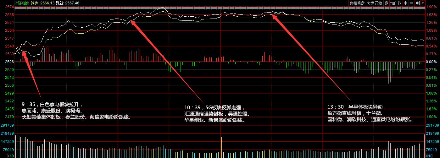两市今日小幅高开,受利好消息刺激,家电、汽车板块直线拉升,权重板块跟随走强,上证50(699016)早盘涨逾2%。但尾盘指数快速回落,创业板回吐涨幅翻绿,深成指、沪指涨幅收窄。