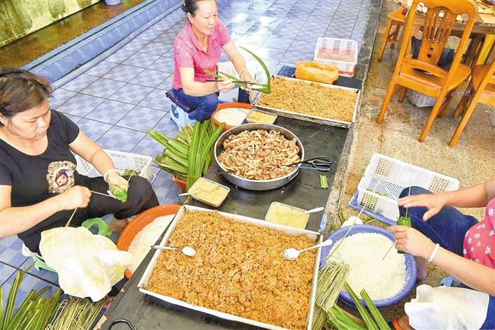 包海胆粽的方法都靠耳濡目染的传承,这些包粽师傅从六七岁开始包海胆粽。