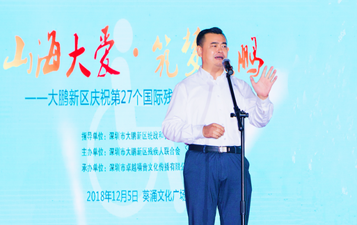 活动的总策划、著名诗人、深圳市大鹏新区统战和社会建设局常务副局长、大鹏残联理事长白凌先生说:山海般的大爱来自美丽的深圳大鹏,身残志坚的人士在此筑梦、追梦直到实现梦想!这是2018年大鹏新区纪念“国际残疾人日”大型活动的目的所在。