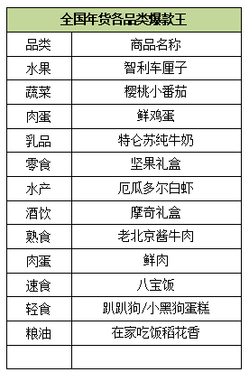 此外值得一提的是,女性依然是囤年货的主力军;90后超过80后,扛起囤年货大旗。智利车厘子继2018年成为网红爆款水果后,2019年仍旧领衔年货水果C位,成2019年年货爆款王。