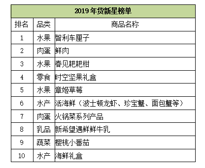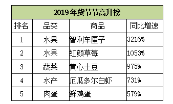 6.智利车厘子、鲜肉、活海鲜成2019年年货新星。
