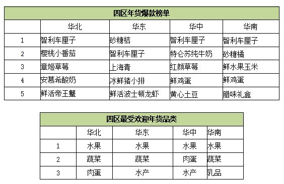 在已经上线的每日优鲜的华南年货频道里,水果、肉蛋、酒水等品类占据“大半壁江山”,特别是高端水果,占比从去年的20%提升到50%,最受喜爱的有车厘子、上上签砂糖桔,此外受华南人民欢迎的年货还包括鸡蛋、箱装牛奶和零食大礼包等。