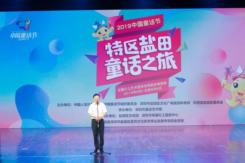 教育部业务主管中国人生科学学会会长关山越、学会项目主管何厚桢、盐田区委常委宣传部部长董秀、盐田区文化广电旅游体育局局长彭洁、市文化广电旅游体育局公共文化处蔡书腾等领导共同出席开幕仪式。关会长及董部长代表主办单位发言,欢迎各代表团,并对少年儿童的艺术学习和成长寄予厚望,希望小客人们在童话之旅的舞台上尽情展示自己的风采,更希望他们能够喜欢上盐田,感受到盐田观众的热情和友爱。