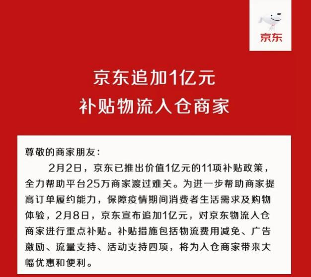 京东追加1亿元补贴物流入仓商家