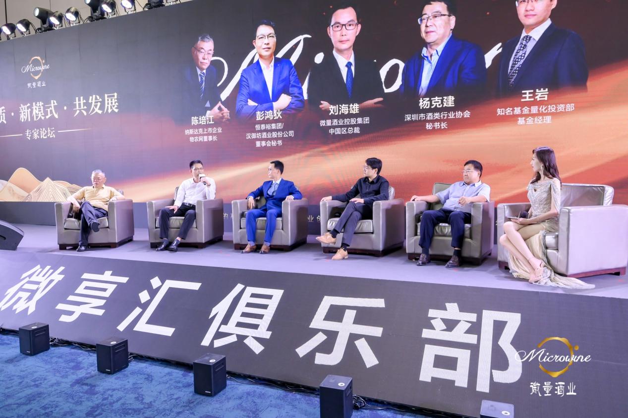 专家论坛,微量酒业控股集团中国区总裁刘海雄,恒泰裕集团、汉御坊酒业董事秘书长彭鸿狄,深圳市酒类行业协会秘书长杨克建,纳斯达克上市企业物农网董事长陈培江,知名基金量化投资部基金经理王岩共同探讨微量创新模式的商业价值,共同展望酒业的创新发展。