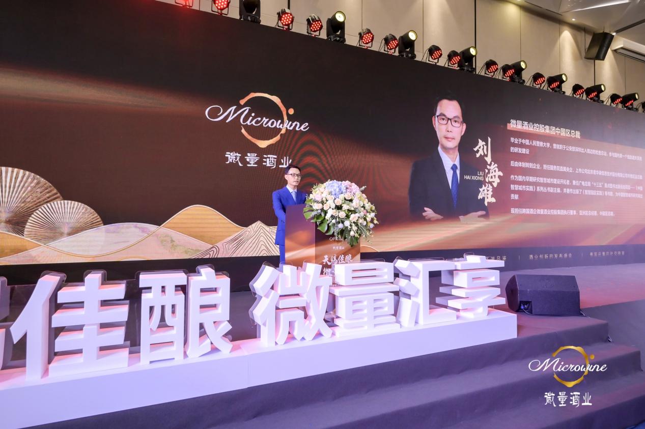 活动上,微量酒业控股集团中国区总裁刘海雄首先向大家致欢迎辞,并表示如今社会处在百年变局前夜,世纪疫情交织叠加,世界经济跌宕起伏,给企业带来巨大挑战。传统酒业内生动力不足,行业经历变革阵痛,而微量酒业以创新模式重新整合高端美酒产业链,为酒业发展开新局、谋新篇。在当前经济大背景下,微量人自我革命,突破传统经销代理模式,开创价值消费新模式,将消费者、经营者、投资者三者深度融合、有机统一,消费者通过微量平台购买喜欢的美酒,获得相应的积分,而每一个积分内含微量公司的股权,让消费者既能喝到好酒,又能获得价值消费带来收益,共享公司成长红利,真正实现“共建、共有、共享、共赢”利益共同体。