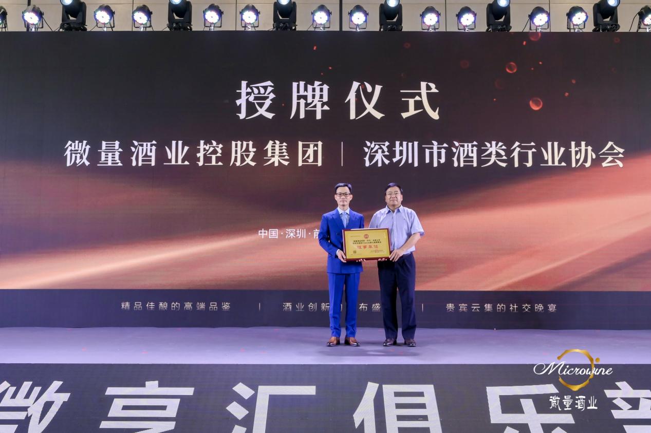 签约环节,进行了微量酒业加入深圳市酒类行业协会的授牌仪式,微量酒业与建设银行深圳蛇口支行签订金融服务战略合作协议,与纳斯达克上市企业物农网签订酒品供应战略合作协议。