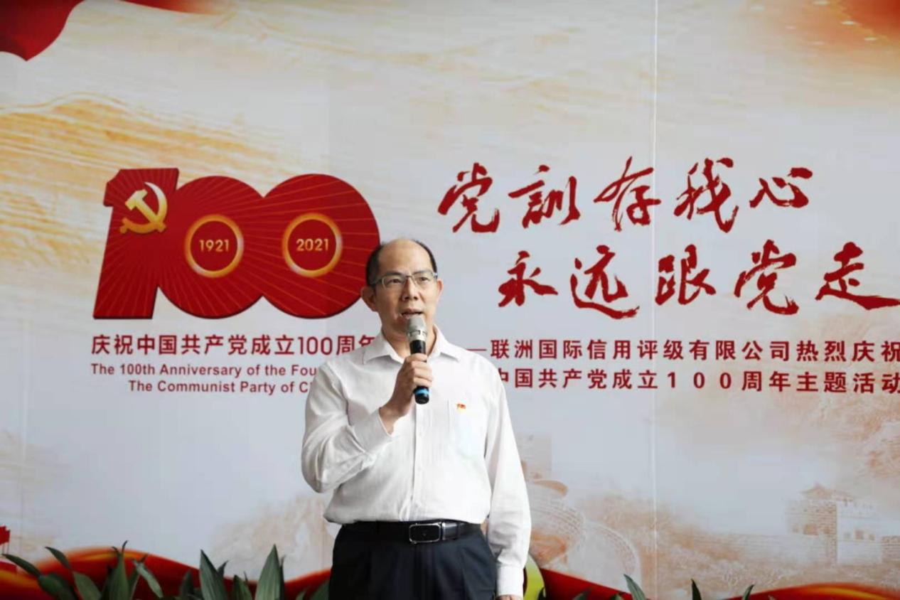 联洲国际信用评级有限公司董事长许建洲在致辞中说到“100载风雨兼程,100载辉煌伟业,火红的党旗闪烁着真理的光芒,展现着信念与理想。在中国共产党的正确领导下,在共产党人坚定理想信念的合力推动下,中国经济高质量发展,科学技术突飞猛进,国力国防步入国际前沿,人民生活质量不断提高。”