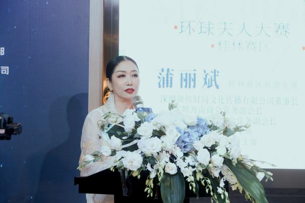 蒲丽斌的另一重身份则是环球夫人大赛桂林赛区名誉主席,她在现场致辞时说:“MRS.GLOBE环球夫人大赛是一场享誉世界的国际赛事,也是一件感动世界的公益盛事,本次环球夫人桂林赛区赛事的组委会秉承大赛‘美丽、智慧、爱心、成功’的宗旨,将夫人文化及真善美的正能量继续传递,把慈善事业落到实处,在追求美好生活的过程中,让更多的杰出夫人在这个象征着美丽、智慧、爱心、成功的舞台上蜕变绽放。”