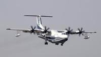 “鲲龙”AG600顺利降落,滑停到首飞仪式现场。 “鹏之徙于南冥也,水击三千里,抟扶摇而上者九万里。”