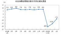 近日,据国家统计局网站消息显示,4月份,社会消费品零售总额28178亿元,同比下降7.5%(扣除价格因素实际下降9.1%,以下除特殊说明外均为名义增长),降幅比上月收窄8.3个百分点。
