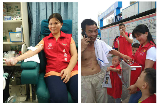 王晓燕,来自河南。2011年底来到深圳,2014年6月加入到盐田志愿者义工的队伍。两年多的义工实践,让她对“义工”有了全新的了解和认识。不管是交通劝导,还是登山环抱,抑或无偿献血,爱心义卖,她以身作则一点一滴踏踏实实的去做每一件事情,去影响他人,感动他人。