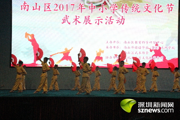 南山区2017年中小学传统文化节武术展示活动由南山区教育科学研究中心主办,南山外国语学校(集团)大冲学校和南山区武术协会承办。南山区教育科学研究中心主任余耀贤介绍,为进一步弘扬优秀中华传统文化,落实立德树人的根本任务,南山区教育局举行了首届传统文化节活动,开展了经典诗词特色展演、中小学书法大赛、中国戏曲和民族乐器比赛、中小学生围棋大赛、传统文化沙龙和专家报告等形式多样的活动。
