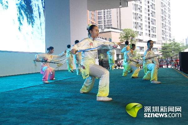 来自前海小学、西丽二中和大冲学校的老师们,也在台上一展身手,他们出拳和刀棍展示更加虎虎有声,气势如虹,英姿飒爽,霸气十足。