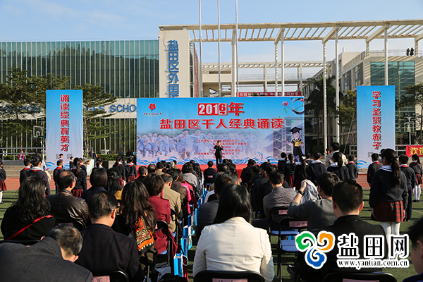 深圳新闻网讯(记者 邓雪婷)“弟子规,圣人训,首孝弟,次谨信,泛爱众,而亲仁,有余力,则学文……”12月30日下午,在梅沙小学操场上,1000余人齐聚一堂,认真地诵读着中华传统经典《弟子规》。这是盐田区“千人诵读”展演活动的一幕场景,朗朗诵读声响彻校园,在全校营造了千人国学经典诵读的浓厚氛围。