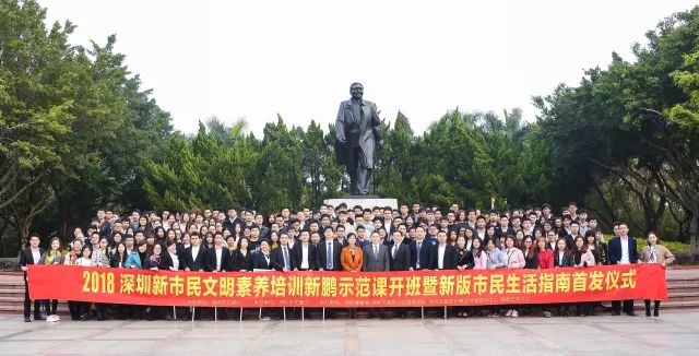 2018年1月26日,深圳市文明办、市关爱办组织举办了“2018新市民文明素养培训新鹏示范课开班仪式暨新版市民生活指南首发仪式”,旨在通过授课、学习等形式,提升市民文明素养,并令参与的新市民充分感受到作为一名深圳人的荣耀和责任,帮助新市民更好地融入城市生活。
