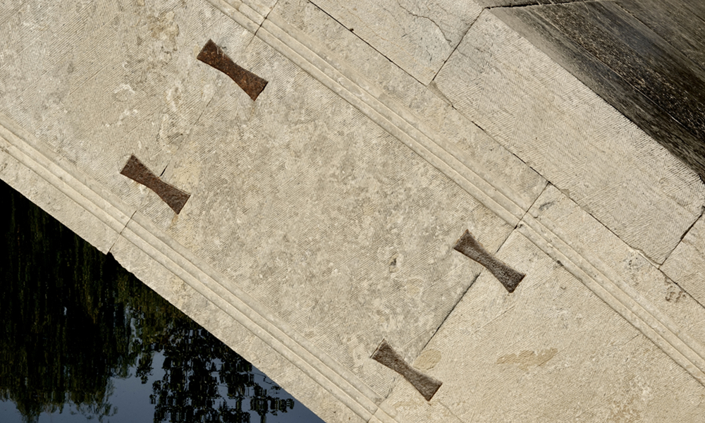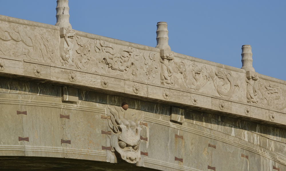 此次修缮在全面测量的基础上采用原来的护拱石、钩石、腰铁、铁拉杆和收分五种做法,还在桥面上下加设了二粘三油防水层(二层防水亚麻布和三层沥青),防止漏水腐蚀现象发生。桥面的所有栏板、望术按早期式样新制。李仁奇 摄