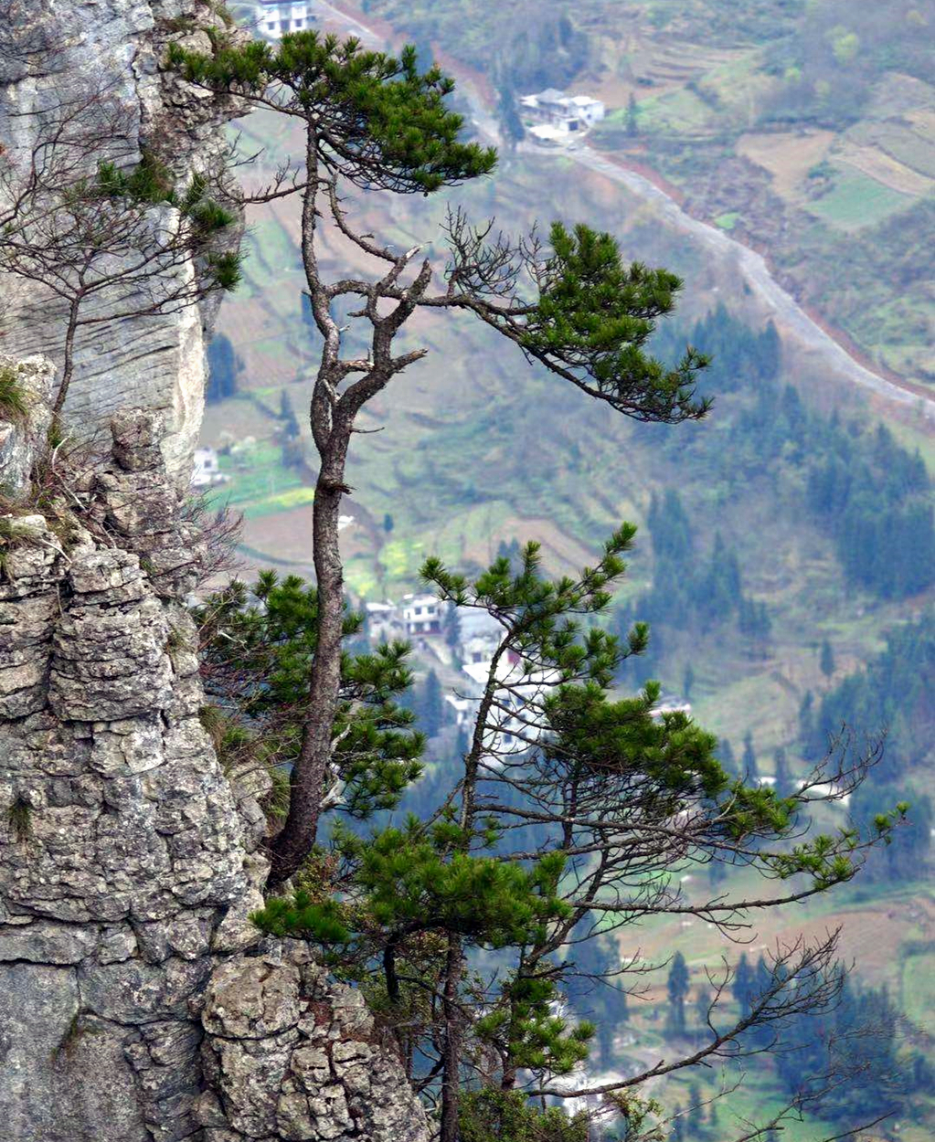 生长在山崖边的松树,沿壁而生,枝叶向外微微倾斜。李仁奇 摄
