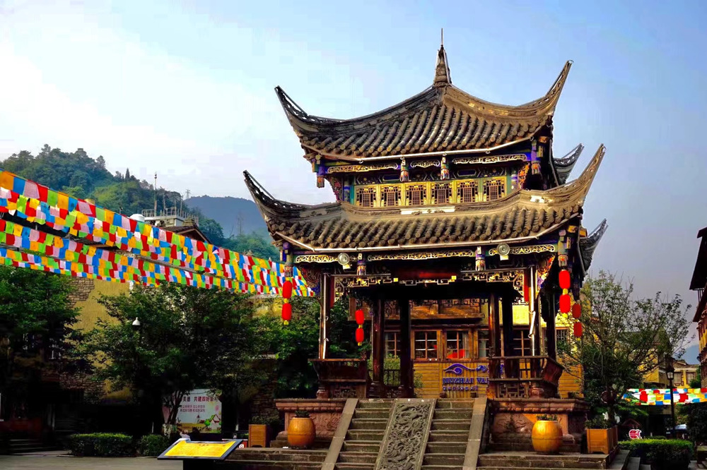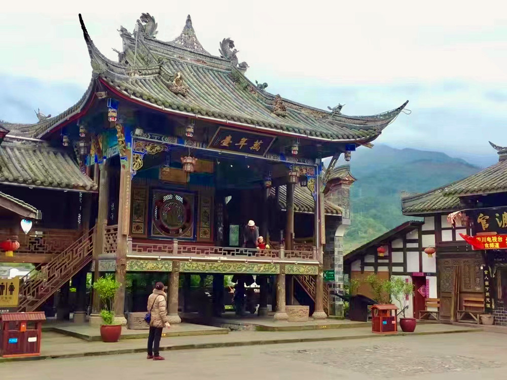 万年台,始建于明万历年间,汶川地震后依原样修复,具有古朴典雅的民族特色和地方艺术风格。李仁奇 摄