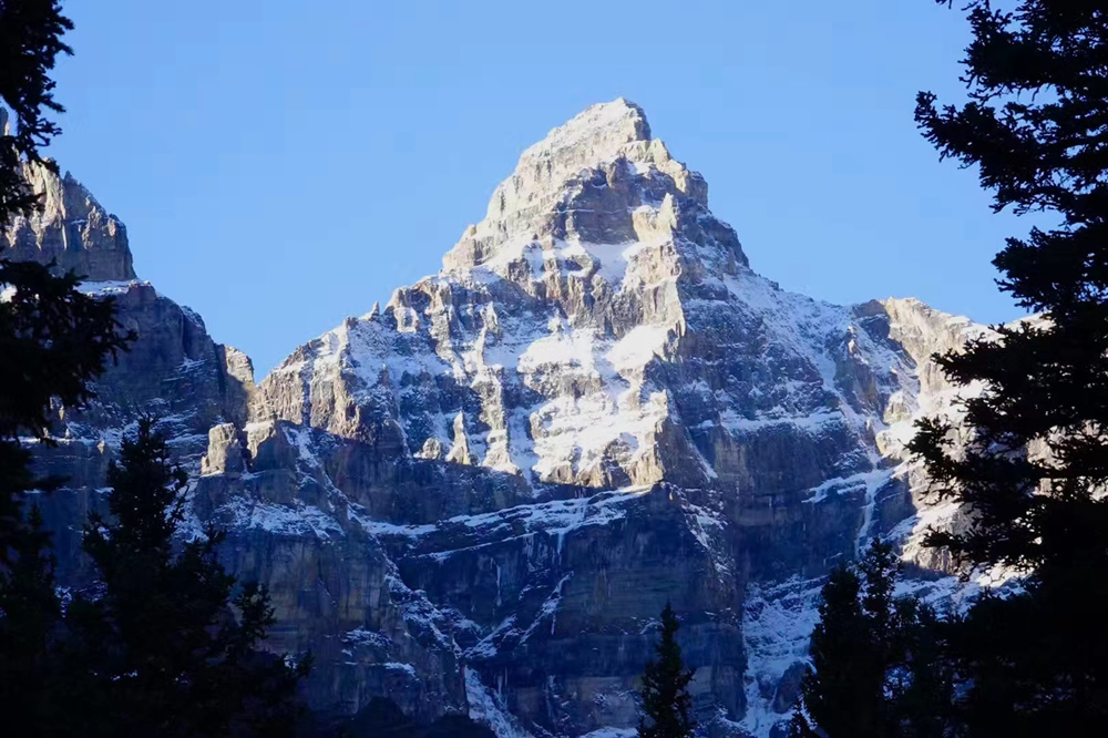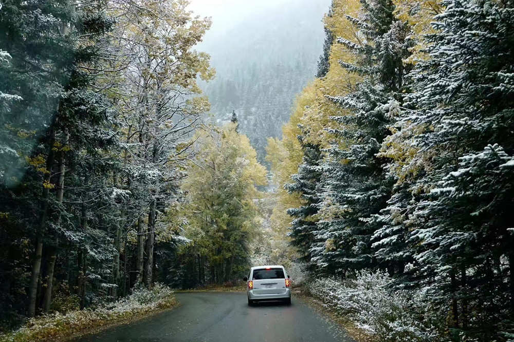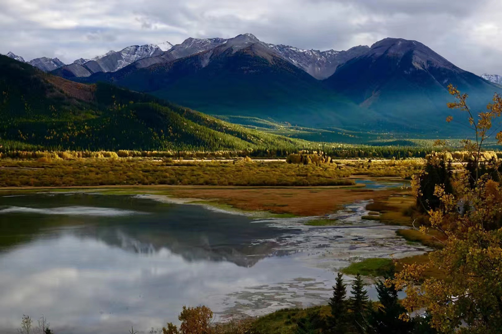 秋季是班夫最美的季节,像九寨沟一样,在蓝色湖泊、绿色丛林之外,又多出了红色和黄色的树叶,映衬在白色的雪山之中,呈现出一个五彩缤纷的世界。李仁奇 摄