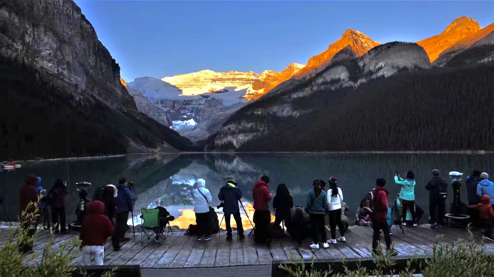 湖水晶莹剔透,在锯齿状的山谷的拥环下,就像一块宝玉。这块“国宝”被印在加拿大20元的纸币上。李仁奇 摄