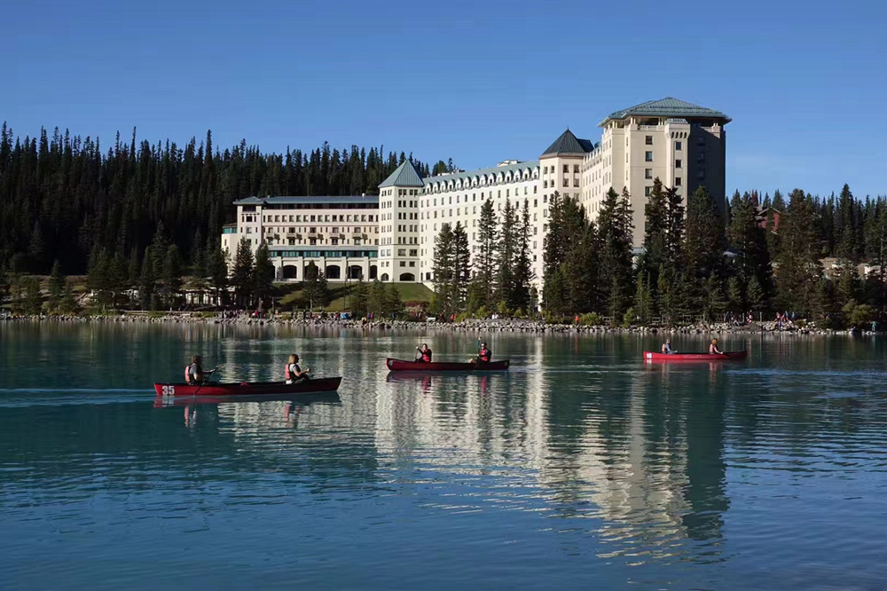 路易斯湖旁边的城堡酒店。李仁奇 摄