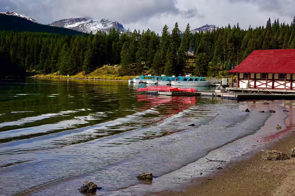 马林湖是加拿大落基山脉最大的冰川湖,宽22公里、面积2066平方米、深约1公里。在湖的周边能看到野生动物的踪迹,可以乘机动船游览,眺望两侧有冰川的群山。李仁奇 摄