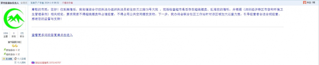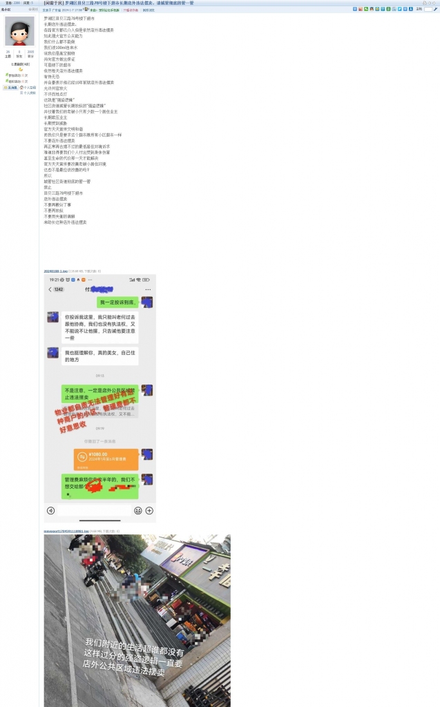 11、帖文《罗湖区田贝三路78号楼下超市长期店外违法摆卖,请城管彻底的管一管》