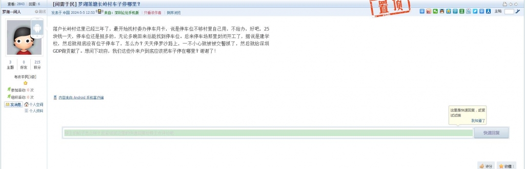 44、帖文《罗湖区中兴路长期违停,造成严重拥堵和噪音扰民!》