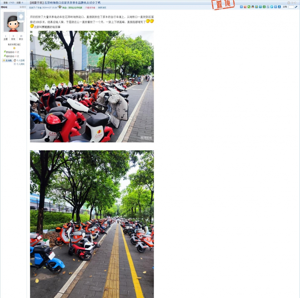 16、帖文《石芽岭地铁口这家共享单车品牌也太过分了吧》