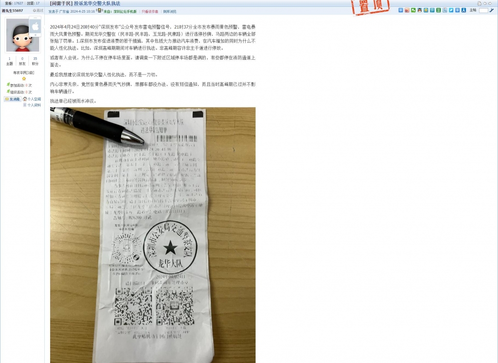 8、帖文《投诉龙华交警大队执法》