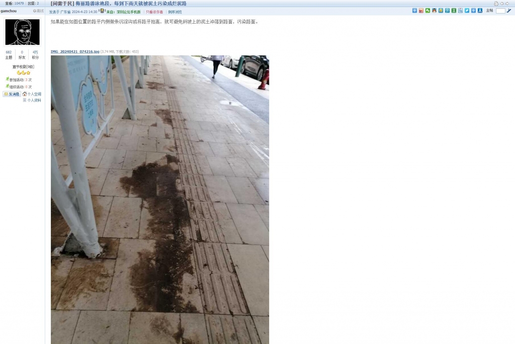 5、帖文《梅丽路游泳池段,每到下雨天就被泥土污染成烂泥路》