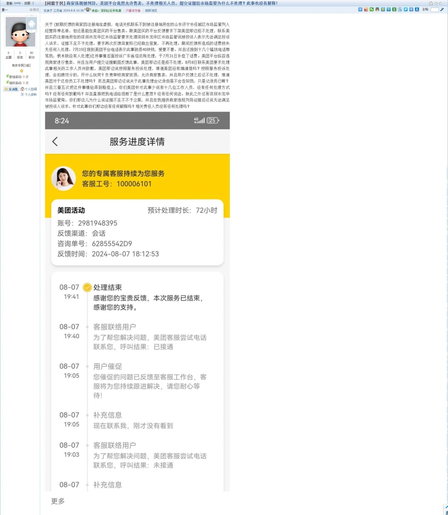 12、帖文《商家违规被列异,美团平台竟然允许售卖,不处理相关人员,提交证据给市场监管为什么不处理?此事也没有解释!》