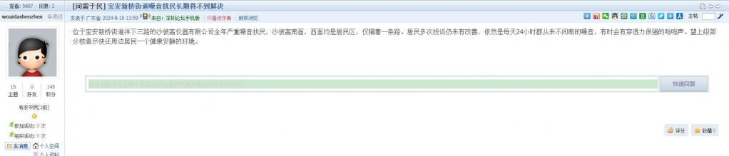 17、帖文《宝安新桥街道噪音扰民长期得不到解决》
