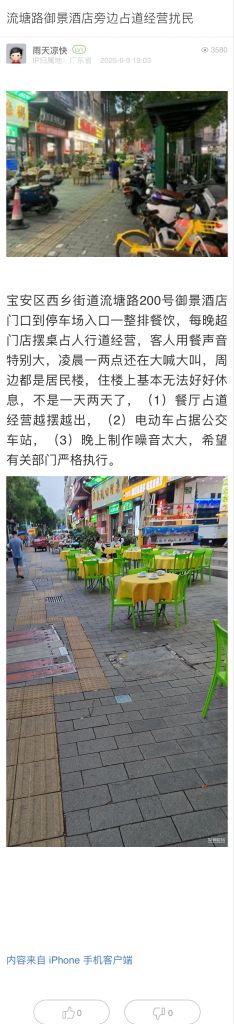 4. 帖文《流塘路御景酒店旁边占道经营扰民》